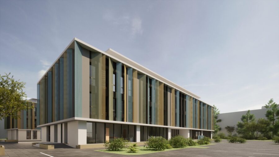 The project involves the structural design of a high school building with a height regime of ground floor plus three stories. The structural system consists of reinforced concrete shear walls complemented by an orthogonal network of reinforced concrete frames made of columns and beams. All floor slabs are reinforced concrete, designed using a traditional cast-in-place solution.